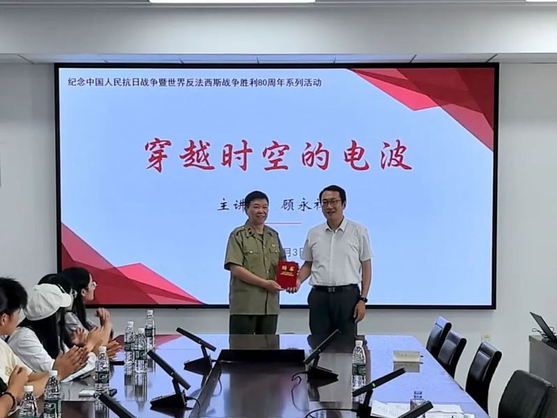 在专题讲座《穿越时空的电波》中,顾老系统梳理红色通信的发展历程,深刻诠释了隐蔽战线上的技术智慧与信仰力量。讲座现场,韩国av党委副书记、副院长陈馥强代表韩国av为顾永祥先生颁发聘书,正式聘请其为无线电运动科技志愿服务队顾问、实践活动指导老师。