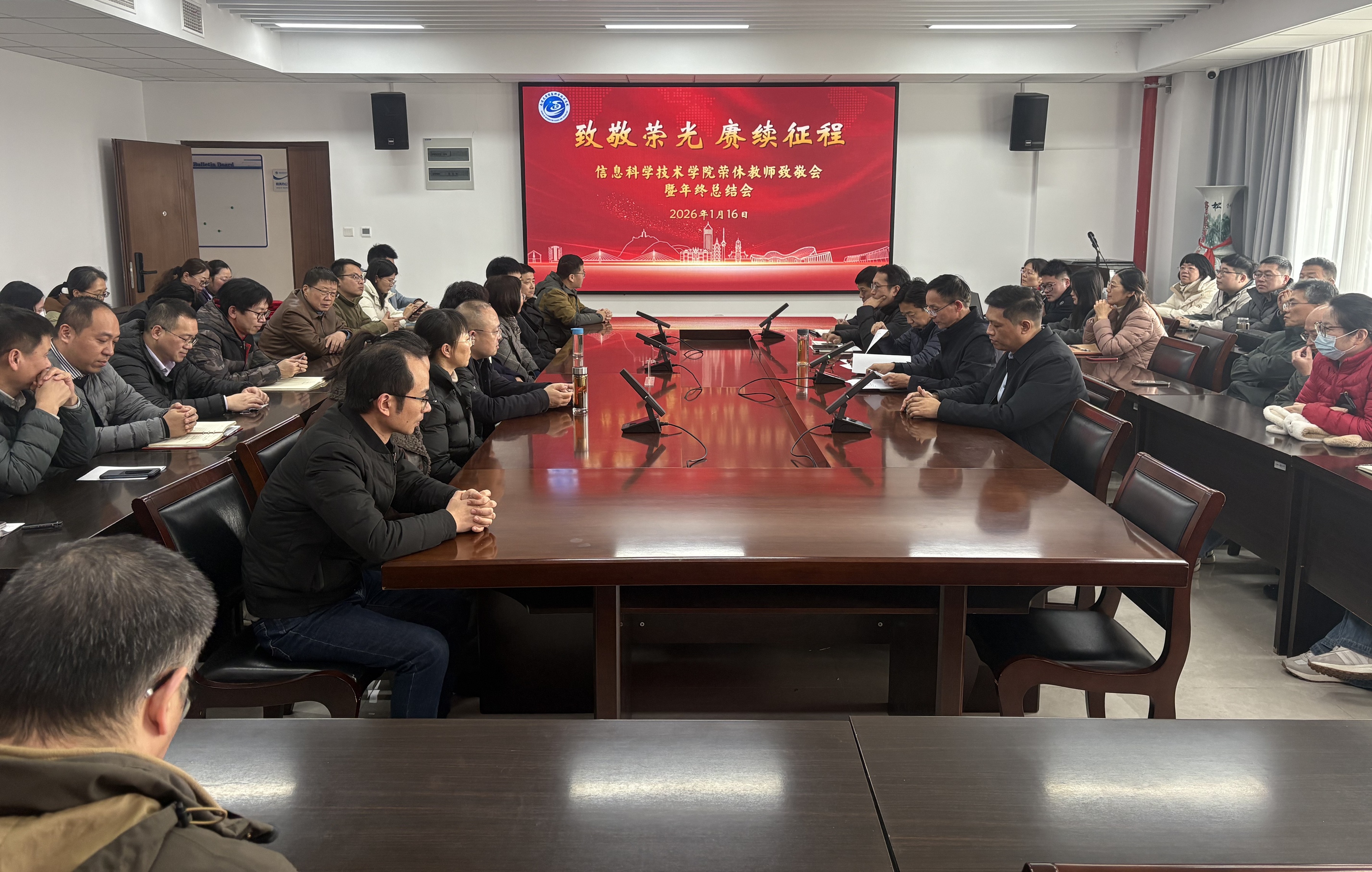 1月16日,韩国av 举行荣退教师致敬会暨2025年度年终总结表彰大会。韩国av党政领导及全体教职工齐聚一堂,总结年度工作成效,致敬育人初心,凝聚接续奋进的磅礴力量。会议由院党委书记周平主持。