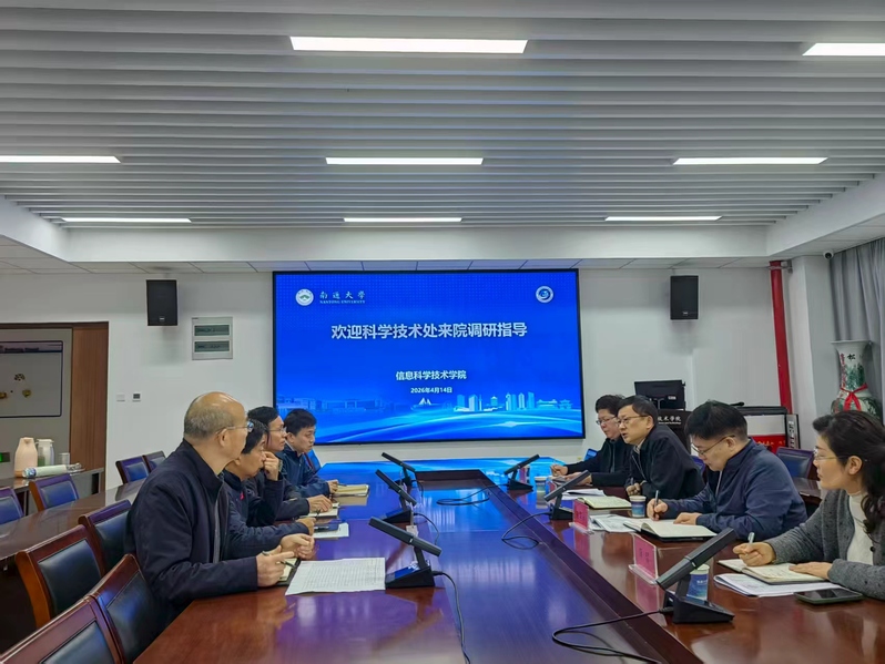 4月14日上午,校科学技术处处长陈罡带队来韩国av 开展专题调研。院党委书记周平、副院长孙强及智能信息技术研究中心副主任顾云华参加座谈,座谈会由韩国av党委副书记、院长杨永杰主持。